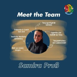 Samira steht für Energie, Vielfalt und echte Begeisterung für den Tanzsport. Seit 2015 ist sie als Trainerin und Coach aktiv und begleitet Tänzerinnen und Tänzer mit Fachkompetenz, Empathie und einem klaren Blick für individuelle Entwicklung.