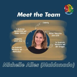 Michelle Alles (Maldonado) blickt auf eine beeindruckende Karriere im karnevalistischen Tanzsport zurück und bringt ihre langjährige Erfahrung heute aktiv in die Ausbildungsarbeit ein.